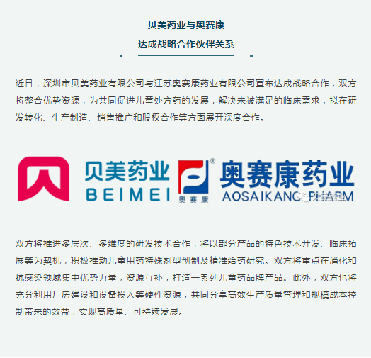 貝美藥業(yè)與奧賽康達(dá)成戰(zhàn)略合作伙伴關(guān)系
