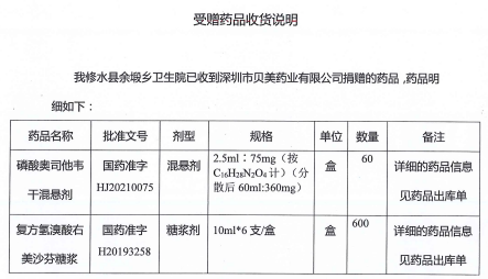 12月23日,深圳市貝美藥業(yè)有限公司創(chuàng)始人、董事長吳光美聽聞家鄉(xiāng)人民面臨的困境,主動聯(lián)系對接余塅鄉(xiāng)衛(wèi)生院多方籌措抗疫藥品。第一時間緊急調(diào)配一批抗疫藥品,于27日晚通過物流的形式捐贈給鄉(xiāng)衛(wèi)生院,免費發(fā)給有需要的患者,有效地緩解了全鄉(xiāng)群眾用藥難題,破除了患者恐慌焦慮情緒。