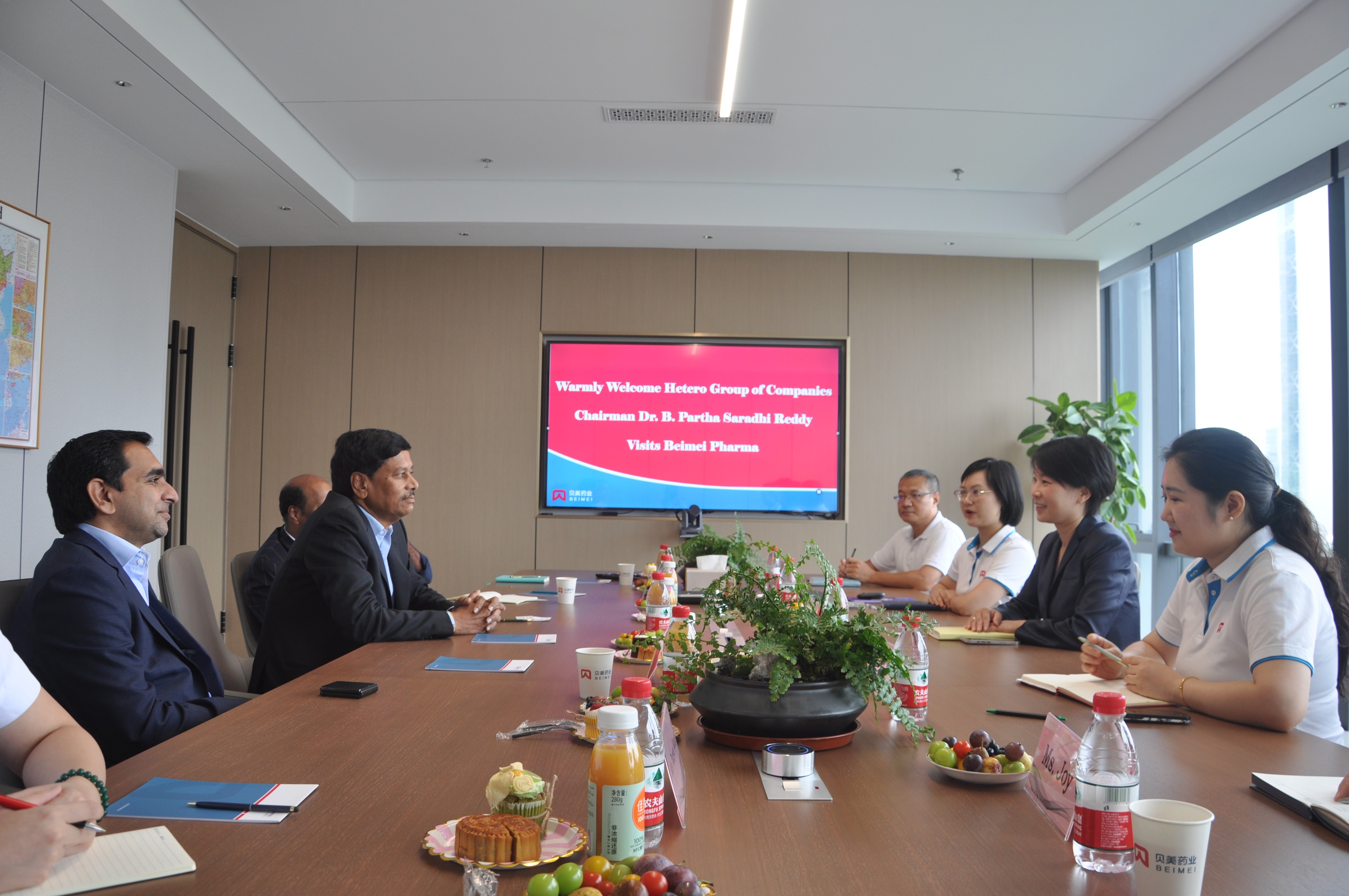 2023年8月31日上午,印度Hetero制藥公司主席Dr. B.Partha Saradhi Reddy、新興市場總裁Mr. Bheemireddy Murali Krishnar Reddy、國際市場副總Mr. Variyath Muraleedharan、API 負(fù)責(zé)人 Mr. Suman Reddy Bandi、制劑BD Tanya Wang一行五人來訪深圳市貝美藥業(yè)有限公司參觀交流。貝美藥業(yè)董事長兼CEO吳光美女士、首席技術(shù)官兼副總經(jīng)理任鵬、副總經(jīng)理李歡以及貝美BD團(tuán)隊熱情接待。