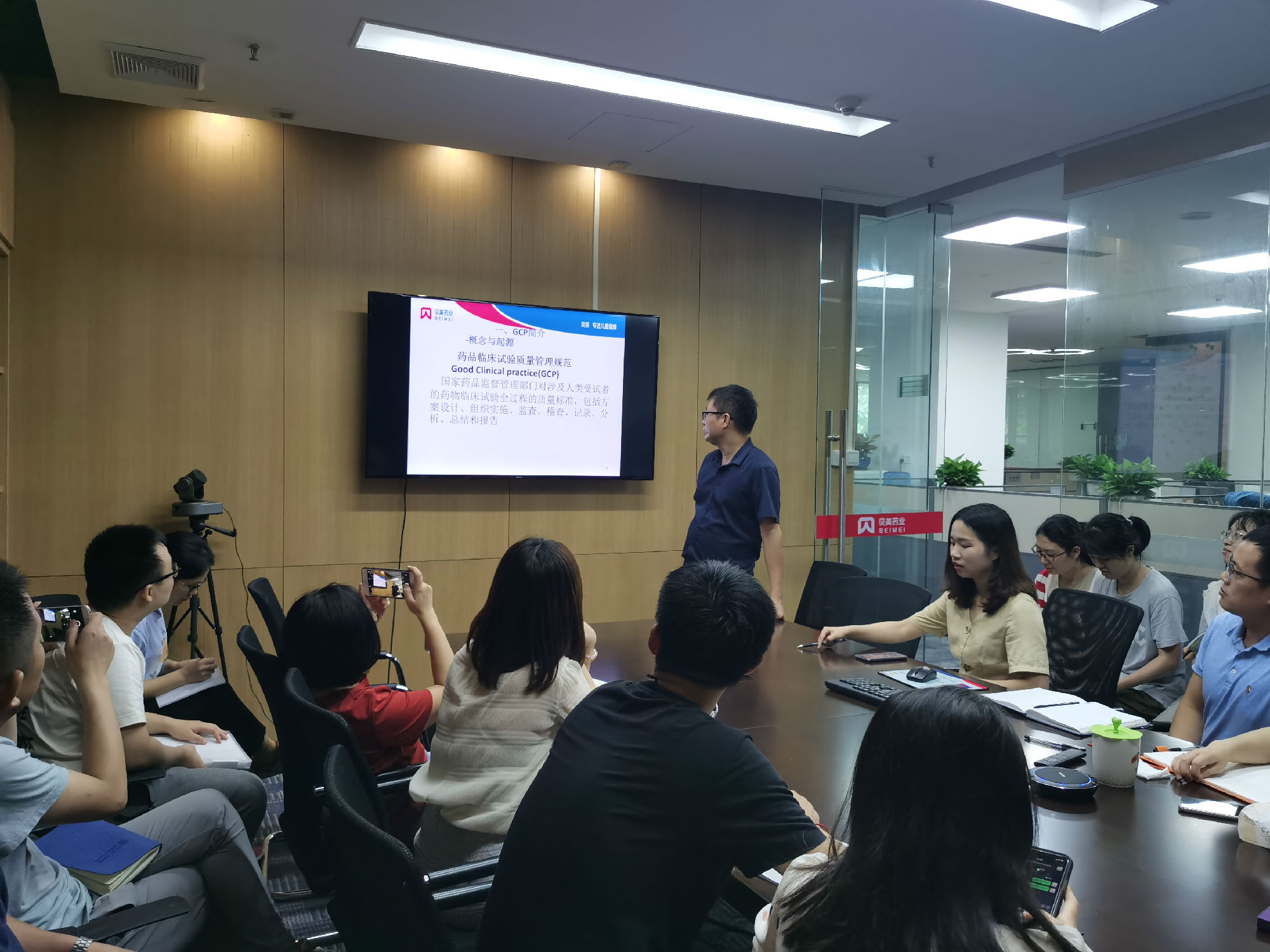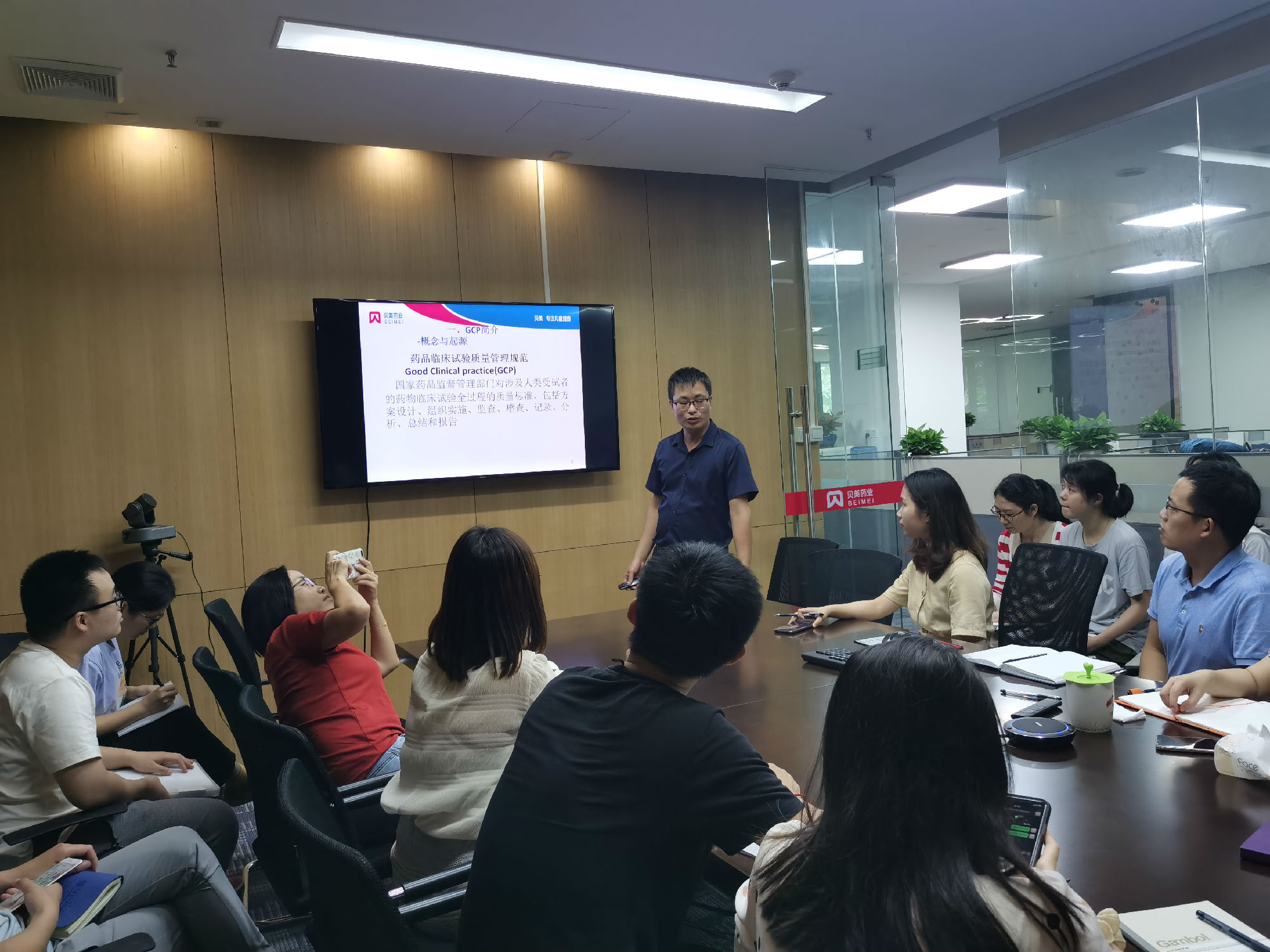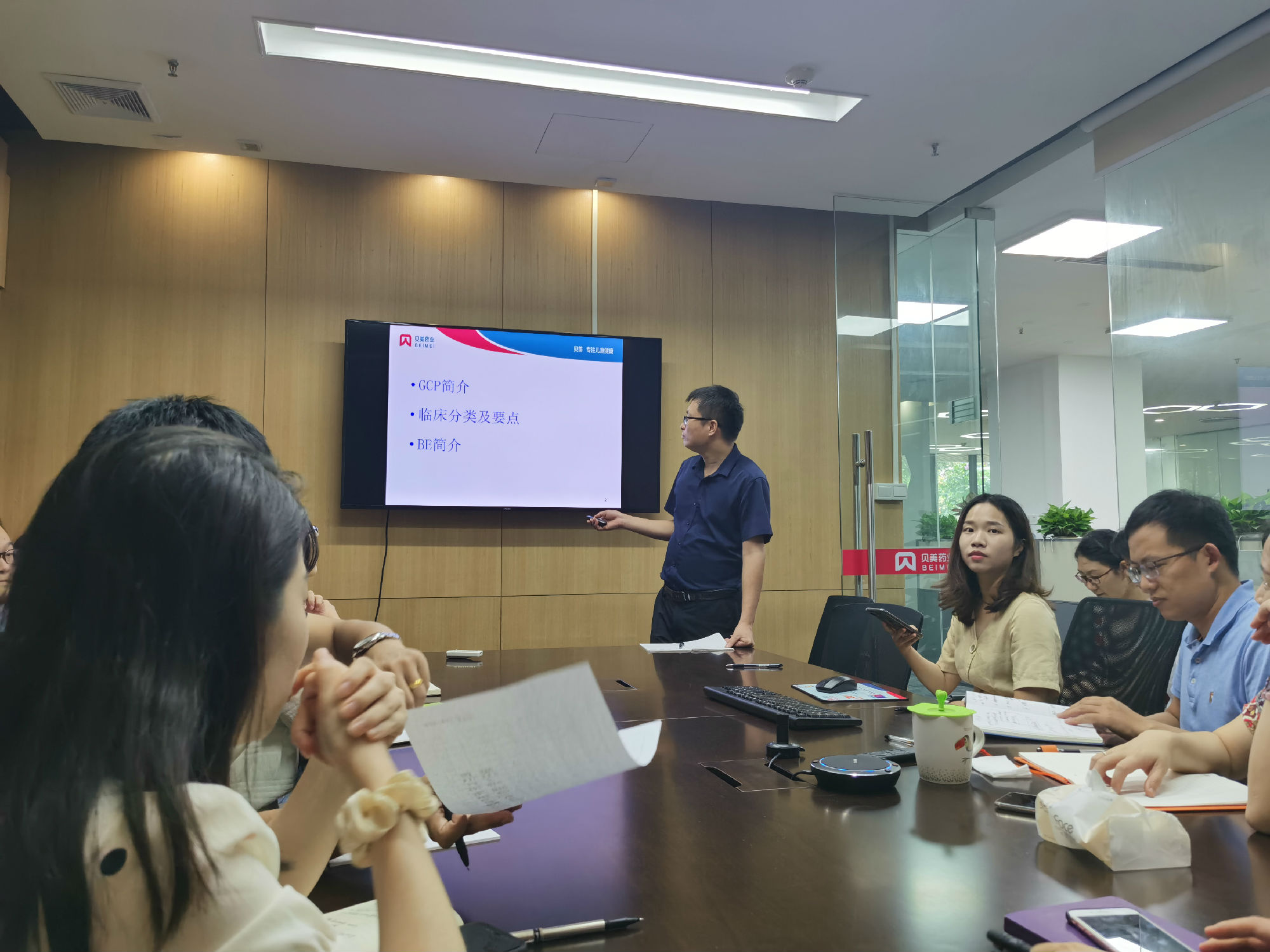 2020年8月21日,臨床注冊(cè)經(jīng)理唐邦忠組織培訓(xùn)藥品臨床知識(shí)。