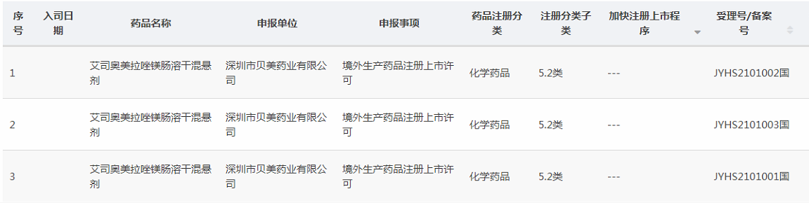 我司艾司奧美拉唑鎂腸溶干混懸劑的上市申報(bào)獲CDE正式受理